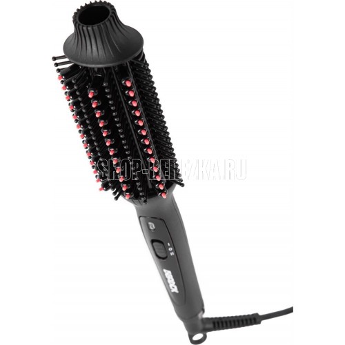 Керамическое покрытие зубцов расчески улучшает кровообращение и благоприятно действие на рост волос. Процесс нагревания займет не более 30 сек. L-170°C – первый режим температуры нагрева. H-200°C – второй режим температуры нагрева. Индикатор включения. Длинна шнура - 1.8 м.