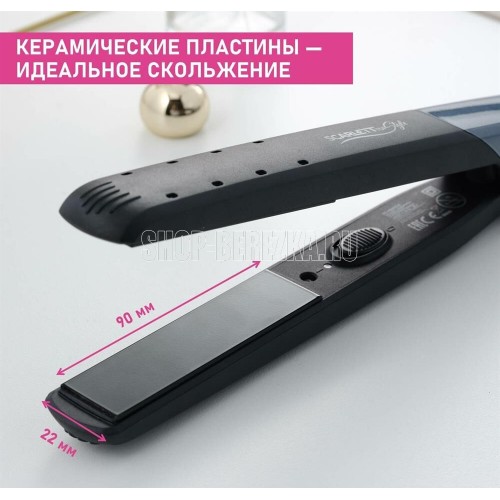 Тип: Выпрямитель Мощность, Вт: 25 Максимальная температура (t°C): 190 Защита от перегрева: Да Количество температурных режимов: 1 Защита шнура от перекручивания: Да Диаметр / ширина пластины, мм: 22 Длина пластин, мм: 90 Материал рабочей поверхности: Керамика Для выпрямления волос: Да Световой индикатор включения: Да Длина электрошнура, м: 1.7 Функция блокировки пластин: Да Цвет: Черный. Выпрямитель SC-HS60014 прост и удобен в использовании, подойдет для любого типа волос. Керамическое покрытие помогает легко и бережно выпрямить волосы любой длины, а также позволяет теплу однородно распределяться по поверхностям пластин, сохраняя структуру волос и не пересушивая их. Удобный шнур вращается на 360 градусов, и обеспечивает максимальный комфорт при создании укладки. Функция блокировки пластин обеспечит безопасную эксплуатацию и удобное хранение прибора.