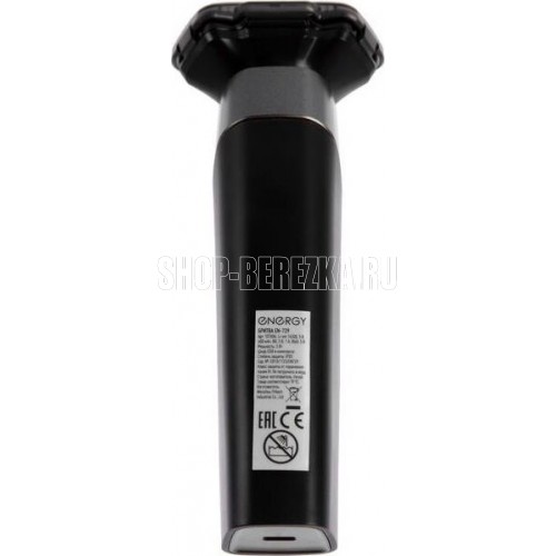 Мощность 3 Вт LED дисплей Функция блокировки Блок независимых бреющих головок Триммер для бакенбард и бороды Встроенный аккумулятор Li-ion 14500,5В,600мАч Зарядка от USB Вход DC 5В-1A Выход 5В Время работы:до 70 минут Время зарядки:2 часа Степень защиты IPX6 В комплекте: Защитная книжка Щеточка для очистки Шнур USB