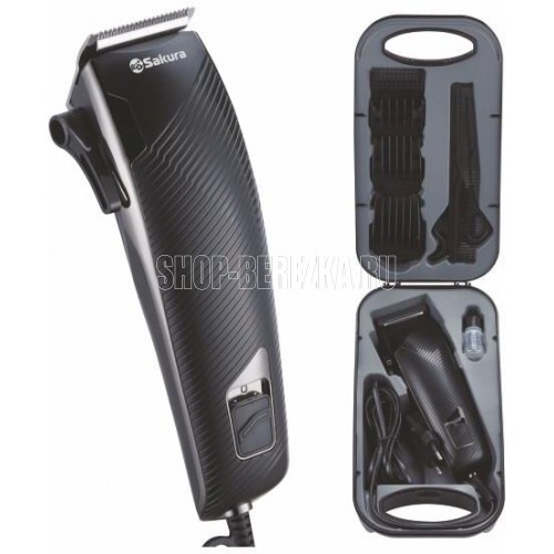 Кейс для переноски и хранения, стальное лезвие, работа от сети 220-240 В, мощный мотор (7 Вт), 3-ступенчатая регулировка лезвия с помощью рычажка, кабель питания 1,8 м, в комплекте: 4 насадки (3, 6, 9 и 12 мм), расческа, ножницы, масло, кисточка для очистки. Цвет: чёрный/ хром