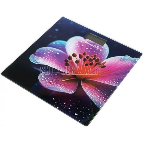 Максимальная нагрузка 150 кг Цена деления 100 грамм Стеклянная поверхность Размер платформы 26*26 см LСD дисплей Указатель температуры воздуха на дисплее Прорезиненные ножки против скольжения Выбор единиц измерения (кг, фунты) Автоотключение Индикатор перегрузки и заряда батарейки Питание от батареек 2*ААА (1,5В) Напряжение 3 В