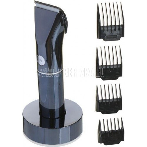 Фиксированные лезвия из высококачественной стали с титановым покрытием. Керамические подвижные лезвия. Установка длины поворотом корпуса 0.8 мм.,1.4 мм., 2.0 мм. 4 съёмные насадки 3 мм., 6 мм., 9 мм., 12 мм. Литиевая батарея 1*700мАч. Турборежим. Время заряда батареи 1,5 часа. Время непрерывной работы 1 час. LED-дисплей. Поворот базы на 360°С. Индикация уровня заряда. Индикатор включения блокировки. Возможность работы от сети и от аккумулятора. Удобная подставка для подзарядки и хранения. Аксессуары: щёточка, смазочное масло. Мощность 3 Вт. Электропитание: 220-240 В., ~50-60 Гц.