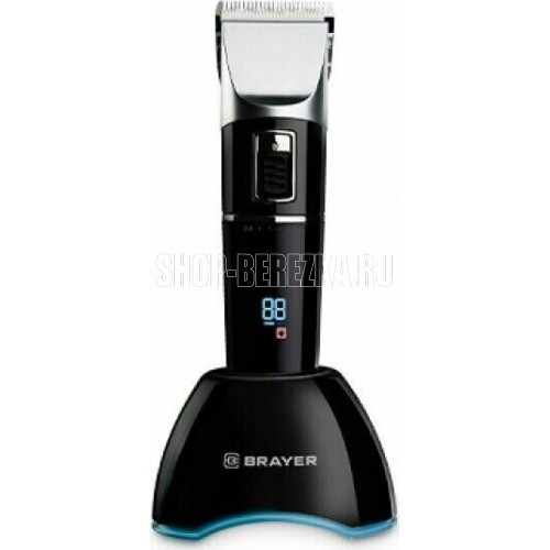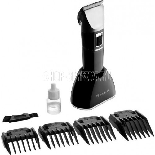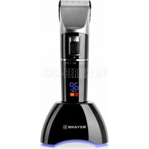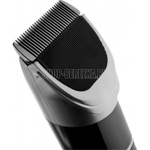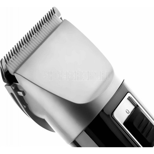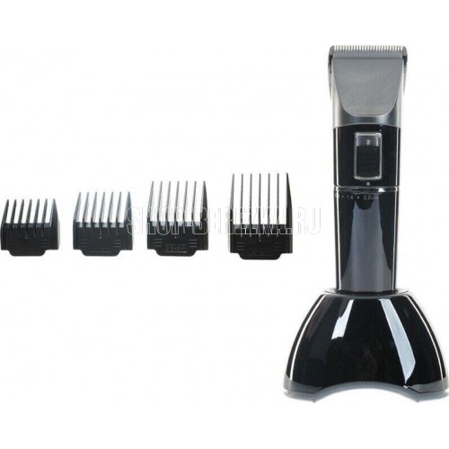 Фиксированные лезвия из высококачественной стали с титановым покрытием. Керамические подвижные лезвия. Установка длины поворотом корпуса 0.8 мм., 1.4 мм., 2.0 мм. 4 съёмные насадки 3 мм., 6 мм., 9 мм., 12 мм. Турборежим. Время заряда батареи 1,5 часа. Время непрерывной работы 1 час. LED-дисплей. Поворот базы на 360 °С. Индикация уровня заряда. Возможность работать от сети и от аккумулятора. Литиевая батарея 1*700 мАч. Удобная подставка для подзарядки и хранения. Аксессуары: щёточка, смазочное масло. Мощность 3 Вт. Электропитание: 220-240 В., ~50-60 Гц.