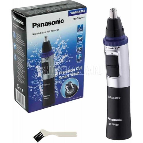 PANASONIC ER-GN30-K520 Panasonic ER-GN30 – машинка, которая обеспечит безупречный внешний вид. Безболезненно состригает волосы длиной от 1 мм в носу и ушах. Подходит также для коррекции формы бороды и бровей. Лёгкая и компактная, она удобна в работе и не занимает много места (это очень удобно в путешествиях). Лезвия с двусторонней заточкой облегчают процесс стрижки и минимизируют неприятные ощущения.