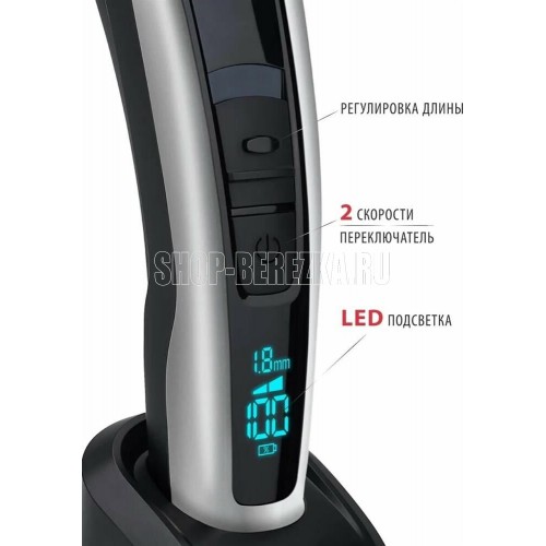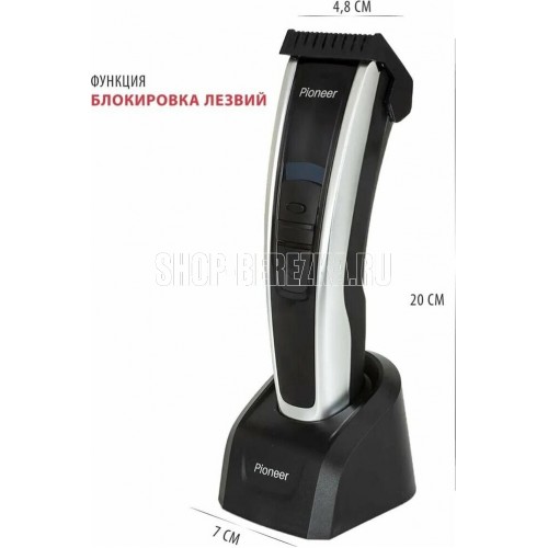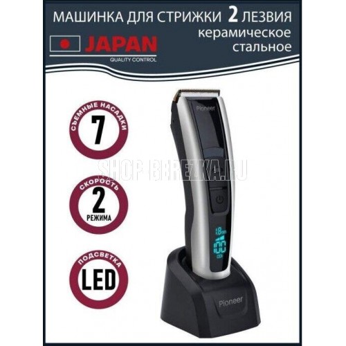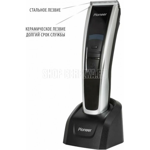 PIONEER HC06R Количество скоростей: 2 Тип питания: литиевая батарея 1800 мАч Время непрерывной работы, мин.: 150 Время зарядки аккумулятора, час.: 2,5 Материал лезвий: сталь и керамика Индикаторы: низкого заряда, необходимости использования масла Дисплей: есть Насадки: 7 съемных регулируемых насадок 4/7/10/18/24/30 мм, насадка для филировки Комплектация: машинка для стрижки, съемные насадки, адаптер питания, масло, чистящая щеточка, гарантийный талон, инструкция на русском языке Цвет: черный с серебристым Размер упаковки, см. (ВхШхГ): 22.2x23x6.5 Вес в упаковке, кг.: 0.65 Электропитание, в., Гц.: 220-240, 50 Особенности: блокировка в путешествии