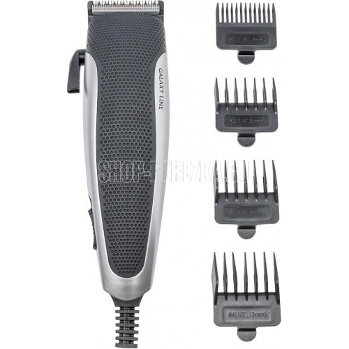 GALAXY LINE GL 4109 Номинальная мощность: 15 Вт Лезвия из нержавеющей стали Ширина лезвия 45 мм 4 насадки-расчески (3, 6, 9, 12 мм) Рычаг регулировки длины лезвия Подвесная петля Щетка для чистки, масло для смазки, расческа, ножницы, защитный колпачок в комплекте Длина шнура питания: 160 см Параметры питания 220-240 В ~ 50 Гц Гарантия: 2 года