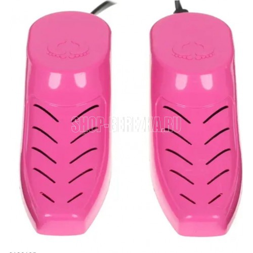 Номинальная потребляемая мощность 12 Вт Рабочая температура 75°С Время нагрева до рабочей температуры 3-5 минут Время непрерывной работы 24 часа Материал: пластик Цвет: розовый Световой индикатор работы Сушилка работает от обычной электрической сети Благодаря оптимальному нагреву обувь не пересыхает и не деформируется Простота и удобство в использовании