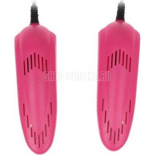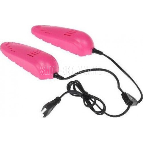 Номинальная потребляемая мощность 12 Вт Рабочая температура 75°С Время нагрева до рабочей температуры 3-5 минут Время непрерывной работы 24 часа Материал: пластик Цвет: розовый Световой индикатор работы Сушилка работает от обычной электрической сети Благодаря оптимальному нагреву обувь не пересыхает и не деформируется Простота и удобство в использовании