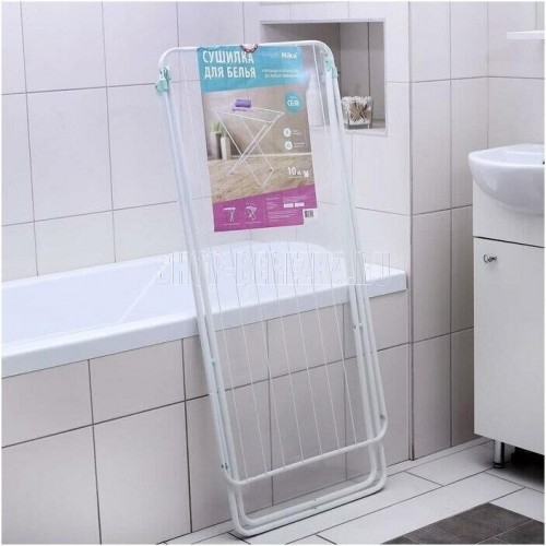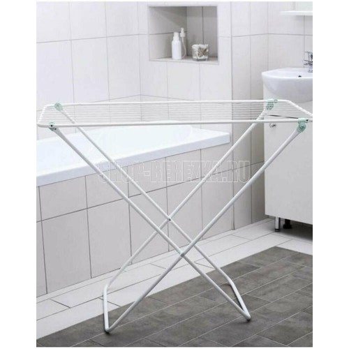 Сушилка для белья классическая для любых помещений. Напольная, складная. Длина сушильного полотна 10м. Макс. нагрузка 10кг. Размеры: 105x54x95h (см).
