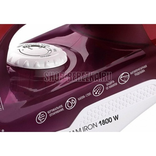 Мощность 1800 Вт. Защита «капля-стоп». Функция самоочистки. Функция распыления. Антипригарное покрытие. Защита от накипи. Мощный паровой удар. Вертикальное отпаривание. Стильный и яркий LED-индикатор. Емкость резервуара для воды 200 мл. Длина шнура 1.8 м.