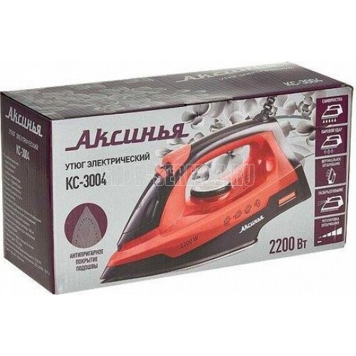 Номинальная потребляемая мощность 2200 Вт Объём резервуара для воды 160 мл Регулируемая подача пара до 25 г/мин Паровой удар 120 г/мин Длина электрошнура 1,5 м Антипригарное покрытие подошвы Прозрачный резервуар для воды Индикатор нагрева утюга Терморегулятор Три рабочих режима: сухое глажение, отпаривание, разбрызгивание воды Возможность регулировки степени отпаривания Функция «Паровой удар» Функция «Самоочистка» Защита от перегрева Цвет: черный с красным