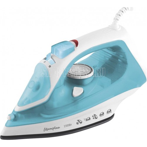 Сухое глажение. Паровой удар. Спрей. Функция самоочистки. Размер подошвы 21.2*11.4 см. Мощность 2000-2300Вт. Напряжение 220-240В, 50-60Гц. Длина шнура 150см. Объем резервуара для воды: 350 мл.