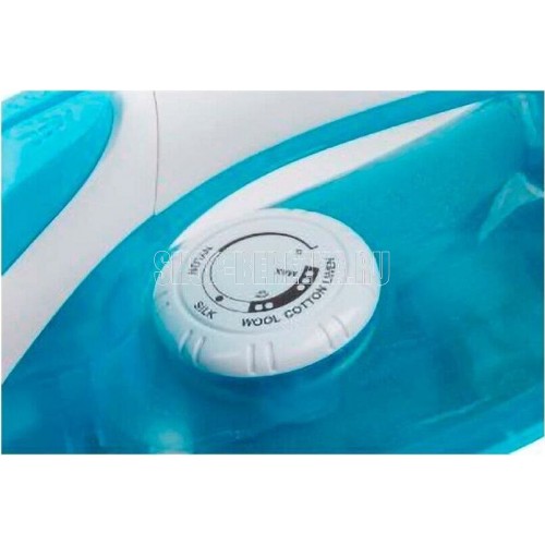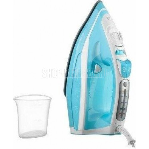 Мощность 1800Вт, резервуар для воды 220мл, тефлоновая подошва (182х100 мм), сухое глажение / глажение с пароувлажнением, регулировка подачи пара, мощный паровой удар, вертикальный пар, самоочистка, световой индикатор работы, кабель питания 1.8 м. Цвет: белый/бирюзовый.