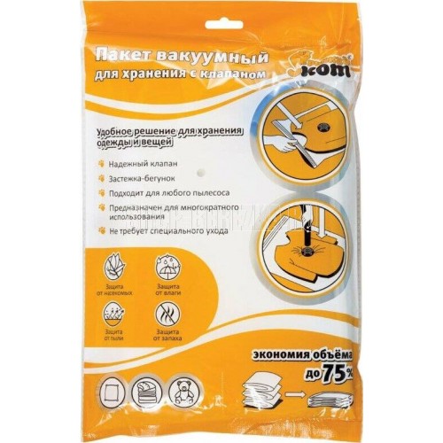 Пакет вакуумный для хранения с клапаном VB7, размер: 60*80см толщина 0,07мм Материал: полиэтилентерефталат, полиэтилен Упаковка: пакет с подвесом, цветная печать