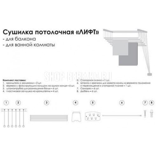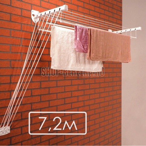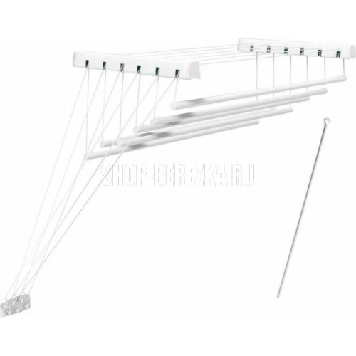 ЦВЕТ: белый. РАЗМЕР ИЗДЕЛИЯ: 430 x 1 200 x 1 350 мм. МАТЕРИАЛ: металл + полипропилен. Сушилка для белья с возможностью крепления на стену или к потолку. Оптимальна для использования в ванной комнате или на балконе. Изготовлена из нержавеющей стали с полимерным порошковым покрытием, которое защищает от воздействия влаги и предотвращает механические повреждения. Суммарная длина поверхности для размещения белья - 7,2м. Максимальная нагрузка - 12кг.