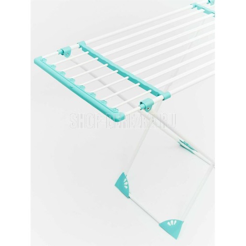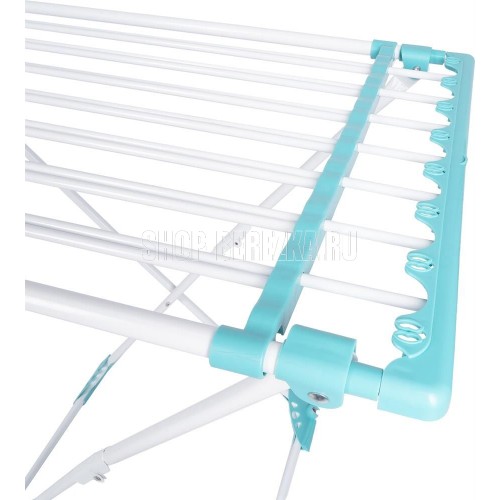 Напольная сушилка для белья AURA Deluxe X это практичное решение для сушки белья дома. Конструктивная особенность сушилки позволяет установить подходящую длину прутьев с помощью телескопического сдвижения. Колесные опоры обеспечивают легкое передвижение сушилки по дому. Диаметр металлических прутьев позволяет сушить белье без заломов. Качественное порошковое окрашивание металлических элементов конструкции защищает от образования ржавчины. Полезная длина для навески белья 20 метров. Цвет: белый; мятный Состав: металл, пластик, антикоррозийное покрытие Комплектация: сушилка для белья напольная -1шт. Ширина упаковки: 56 Высота упаковки: 95