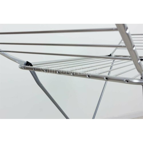 Сушилка для белья напольная складная. Стальной каркас серебристого цвета с антикорозийным полимерным покрытием и алюминиевыми прутьями.Общая рабосая длина прутьев 18 м. Рабочая нагрузка 18 кг. В разложенном виде габариты. 176х55х92 В сложенном виде габариты 55х5х130 вес 2,57