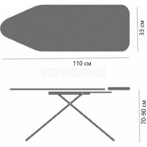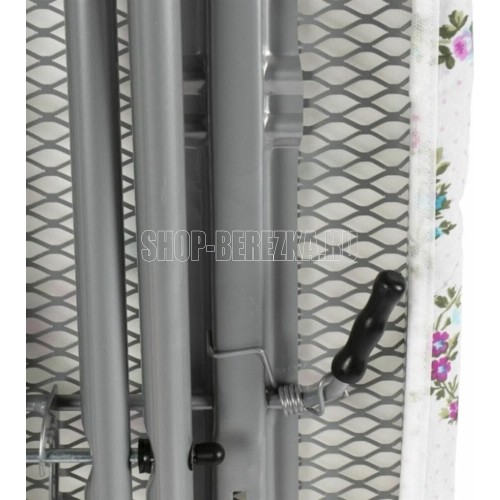 Гладильный стол на метал. сетке. Чехол с подкладкой (100% хлопок), чехол с антипригарным покрытием . Электростатическая порошковая покраска. Подставка под утюг с антипригарными силикон. вставками Ваккумная прозрачная упаковка Усиленная конструкция.
