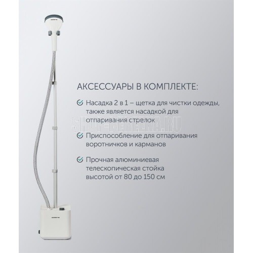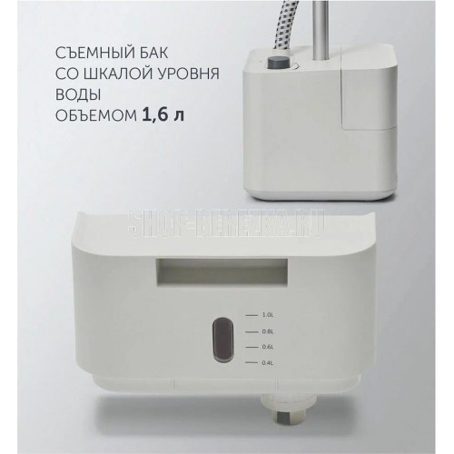 Тип отпаривателя Вертикальный Можно использовать проточную воду Цвет Белый Мощность, Вт 1800 Количество режимов отпаривания 2 Безопасен для всех типов тканей Время нагрева, сек 35 Мощность подачи пара, г/мин 45 Комплектация Съемный резервуар для воды Насадка для отпаривания стрелок на брюках Пластина для отпаривания воротничков и карманов Телескопическая стойка Щетка-насадка для чистки одежды