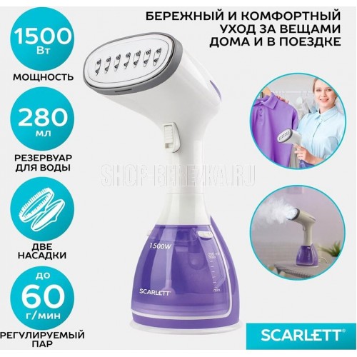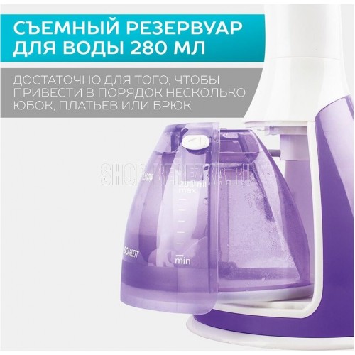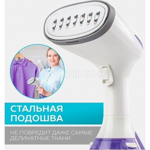 Тип: Ручной Мощность, Вт: 1500 Индикация включения: Да Регулируемый пар до г/мин: 60 Резервуар для воды, мл: 280 Покрытие подошвы: Стальная Готовность к работе, сек: 25 Набор аксессуаров: Насадка-щетка, насадка "вельвет" Длина электрошнура, м: 1.8 Особенности модели: Стальная подошва – не цепляет одежду Цвет: Фиолетовый