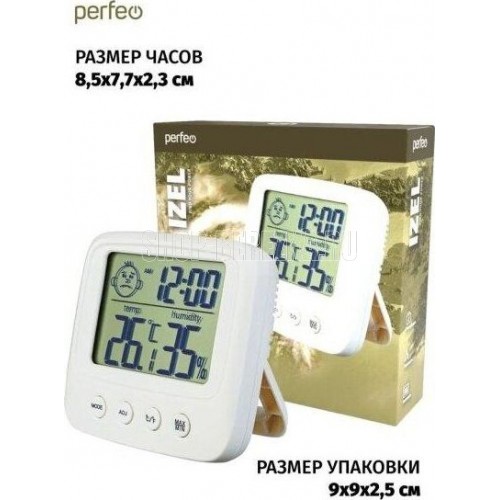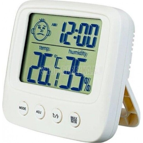ОСНОВНЫЕ ХАРАКТЕРИСТИКИ: • Цифровой дисплей с одновременным отображением времени, температуры и влажности внутри помещения • Отображение времени: час, минута, 12/24 часа переключаемый • Функция будильника • Отображение температуры: С/F • Отображение max и
