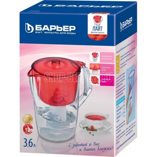 Классический кувшни для большой семьи, объем кувшина 3,6 литра, объем воронки 1,5 литра, классическая круглая форма, мерная шкала на корпусе, срок службы не более 5 лет, цвет: красный, кассета в комплекте, ресурс кассеты 200 л.
