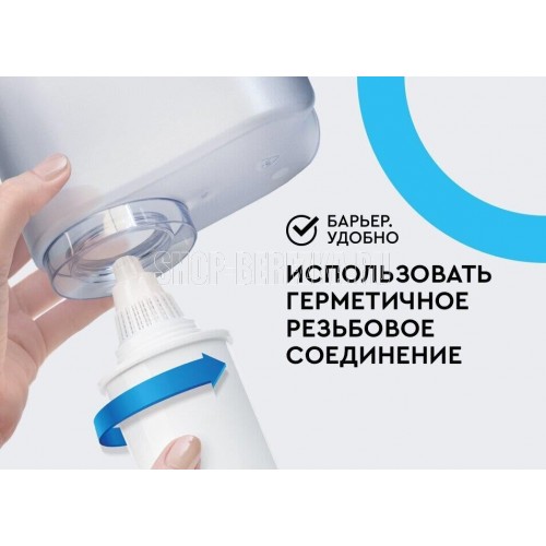 Общий объем 3 л Сменный фильтрующий модуль В100-5 (6,7,8). Вместимость 2,8 л Объем полезной жидкости..