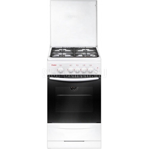 Габаритные размеры ШхГхВ: 50х57х85 см * Цвет: белый. Варочная поверхность: эмалированная * Полезный объём духовки: 42 л * Выдвижной ящик для посуды и принадлежностей * Подсветка духовки одинарная * Газ-контроль горелок стола * Термоуказатель духовки * Газ-контроль духовки * Чугунные решетки горелок стола * Ножки регулировочные * Электророзжиг горелок, кнопка розжига на панели *
