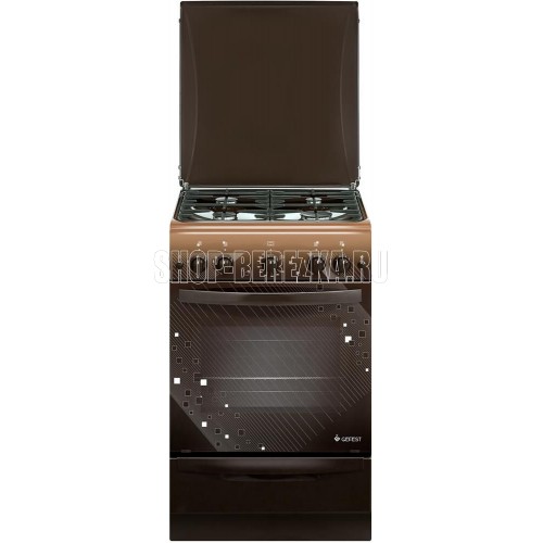 Габариты: 50х58.5х85см. 4 газ. горелки. Духовка газовая. Полезный объем духовки 52л. Газ-контроль духовки. Электророзжиг горелок стола/духовки. Терморегулятор. Гриль-горелка. Проволочные направляющие духовки. Цвет коричневый.
