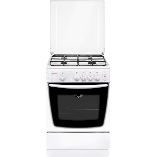 Газовая плита. Цвет: белый. Варочная поверхность: эмалированная. Габаритные размеры ШхГхВ: 60х60х85 см. Полезный объём духовки: 63 л. Выдвижной ящик для посуды и принадлежностей. Стальные решетки горелок стола. Газ-контроль горелок стола. Термоуказатель духовки. Газ-контроль духовки. Штампованные направляющие духовки. Ножки регулировочные. Электророзжиг горелок, кнопка розжига на панели. Подсветка духовки одинарная. Количество зон приготовления: 4. Диапазон номинальных напряжений, В: 220-230. Металлическая крышка. Класс электробезопасности: II.