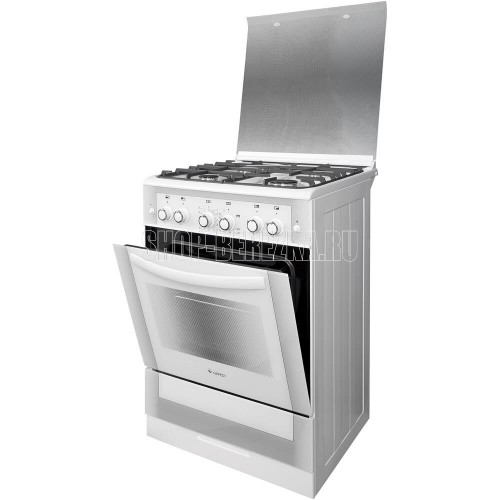 Габаритные размеры ШхГхВ: 60х60х85 см * Цвет: белый. Варочная поверхность: эмалированная. *Полезный объём духовки: 52 л * Вертел с электроприводом * Съемные проволочные направляющие духовки * Выдвижной ящик для посуды и принадлежностей * Таймер механический * Газ-контроль духовки * Терморегулятор (термостат) * Гриль * Чугунные решетки горелок стола * Ножки регулировочные * Электророзжиг горелок, кнопка розжига на панели * Подсветка духовки двойная * Электророзжиг духовки, кнопка розжига на панели *