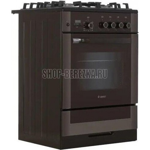 Габаритные размеры ШхГхВ: 60х60х85 см * Цвет: коричневый. Варочная поверхность: закаленное стекло.. * Полезный объём духовки: 52 л * Вертел с электроприводом * Съемные проволочные направляющие духовки * Выдвижной ящик для посуды и принадлежностей * Таймер электронный многофункциональный * Газ-контроль горелок стола * Терморегулятор (термостат) * Газ-контроль духовки * Чугунные решетки горелок стола * Гриль * Шашлычница * Двухзонная горелка * Электророзжиг горелок, встроенный в ручки * Ножки регулировочные * Электророзжиг духовки, встроенный в ручку * Подсветка духовки двойная *