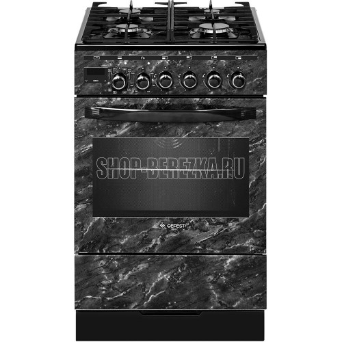 Газоэлектрическая плита. Цвет: черный с рисунком "мрамор". Варочная поверхность: стеклянная. ШхГхВ: 50х58.5х85 см. Объём духовки: 55л. Масса нетто, кг: 45.8. Диапазон номинальных напряжений, В: 220-230. Духовка: электрическая. Без крывшки. Присоединительная резьба газопровода: G1/2. Вертел с электроприводом. Выдвижной ящик для посуды и принадлежностей. Газ-контроль горелок стола. Гриль электрический. Ножки регулировочные. Подсветка духовки одинарная.Съемные проволочные направляющие духовки. Таймер сенсорный многофункциональный. Терморегулятор (термостат). Ускоренный нагрев с конвекцией. Чугунные решетки горелок стола. Шашлычница. Электророзжиг горелок, встроенный в ручки.