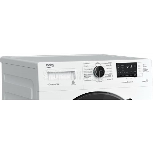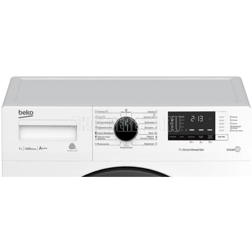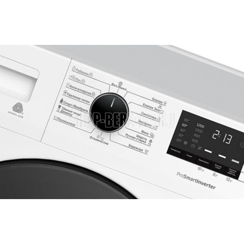 (ВхШхГ)84х60х45см.Цвет белый.Класс энергопотребления A -20%.Максимальная загрузка 7 кг.Максимальная скорость отжима 1200 об/мин.Класс отжима В Потребление электроэнергии 1.05 кВт.Расход воды 52 л.Уровень шума при стирке 63 дБ(А).Количество программ стирки 15.Дисплей Цифровой дисплей.Отложенный старт 0-19 ч.Обратный отсчет/Индикация времени до конца цикла.Сигнал окончания стирки.Блокировка от случайного нажатия/Защита от детей.Регулируемая скорость отжима 1200/1000/800/600.Электронный контроль дисбаланса.Инверторный мотор ProSmart .Технология обработки паром SteamCure.