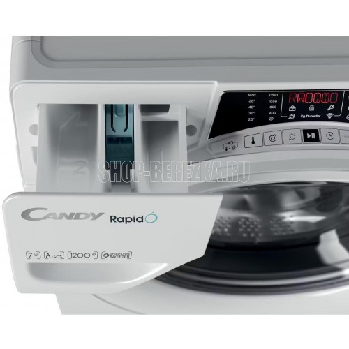 (ШхГхВ) 65х48,5х89см.Цвет белый.Белая окантовка люка. 4 D цифровой дисплей+ чёрная рамка дисплея.Загрузка 7кг.Отжим 1200 об/мин.Мотор инверторный. Управление Wi-Fi + Bluetooth.Пар.MPS+.Rapid’O имеет самое высокое расположение люка и самый большой диаметр люка на рынке. Такое расположение люка упрощает загрузку белья в барабан и его выгрузку после окончания стирки.Диаметр ширины люка 35см.Высота от пола 70,5см.Rapid’O - это самая быстрая и удобная стиральная машина, способная обеспечить стирку белья высокого класса А всего за 39 минут. Защита от перелива.Контроль пенообразования.Контроль дисбаланса.Уровень шума при стирке 51дБ.Уровень шума при отжиме 74дБ.Вес нетто (кг) 62.