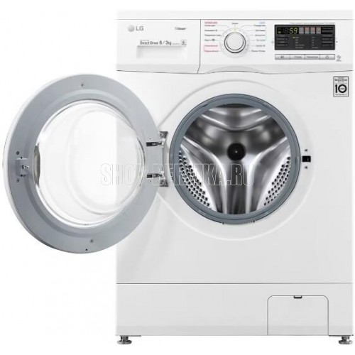 Габариты (ШхВхГ), см: 60х85х44; Цвет корпуса: Белый; Максимальная загрузка при стирке, кг: 6; Максимальная загрузка при сушке, кг: 3; Тип дисплея: Широкий LED; Таймер отсрочки; Индикатор блокировки двери; Основная технология: Inverter Direct Drive; Технология: Smart Diagnosis™; Инверторный мотор с прямым приводом; Технология "6 движений заботы"; Функция сушки; Автоперезапуск; Автовзвешивание; Регулирующиеся опоры, мм: 10; Пузырьковая поверхность барабана; Контроль пенообразования; Программы: Гипоаллергенная; Одежда малыша; Хлопок; Повседневная; Интенсивная; Быcтpо 30; Пoлocкание+Отжим; Шерсть; Класс энергоэффективности: D; Расход электроэнергии, кВт*ч: 6.30; Расход электроэнергии на стирку, кВт*ч: 1.02; Энергопотребление при стирке, отжиме и сушке за полный рабочий цикл, кВт*ч/цикл: 6.30; Энергопотребление только при стирке и отжиме за цикл стирки, кВт*ч/цикл: 1.02; Расход воды (общий), л: 165