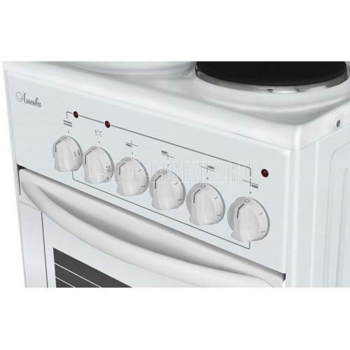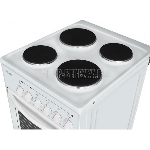 (ШхГхВ) 500х600х840±5 мм.Цвет белый.Установленная мощность: 7 кВт Масса нетто: 37 кг.Количество конфорок: 4 Мощность передней левой конфорки: 1 кВт (145 мм) Мощность передней правой конфорки: 1.5 кВт (180 мм) Мощность задней левой конфорки: 1.5 кВт (180 мм) Мощность задней правой конфорки: 1 кВт (145 мм) При включении жарочного шкафа блокируется правая ближняя конфорка.Тип духовки: электрическая Мощность вехнего ТЭНа: 0.8 кВт Мощность нижнего ТЭНа: 1.2 кВт Температура жарочного шкафа регулируется от 50 до 300 °С Объём жарочного шкафа — 57 л Подсветка духовки Дверца съёмная с двойным стеклом Выдвижной ящик для хранения кухонных принадлежностей