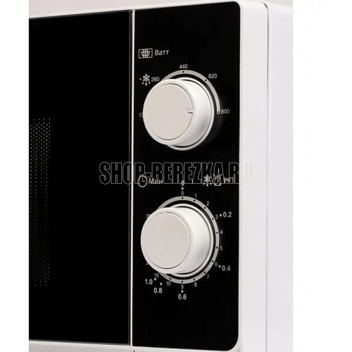 Объем 20 л Мощность микроволн 800 Вт Тип управления механическое Дисплей отсутствует Открывание дверцы кнопка Диаметр поворотного стола 255 мм Цвет белый /черный Размеры (ШхВхГ) 44 х 25.9 х 33.8 см Вес товара 10.9 кг