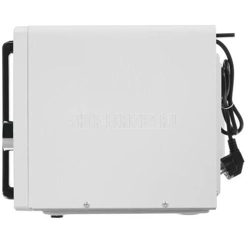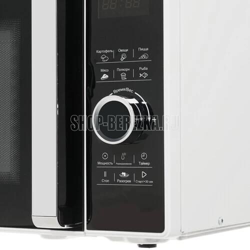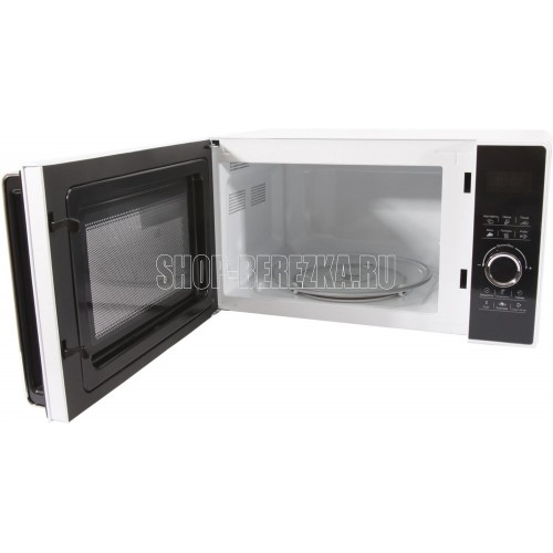 Микроволновая печь, внутренний объем: 23 литра, выходная мощность печи: 800 Вт, тип управления: сенсорный , диаметр поворотного стола: 270 мм, количество уровней мощности: 5, количество программ автоматического приготовления: 6, автоматическое размораживание, таймер: 60 минут, блокировка от детей, тип открывания дверцы: ручка, сигнал окончания приготовления, цвет панели и дверцы - черный, белый
