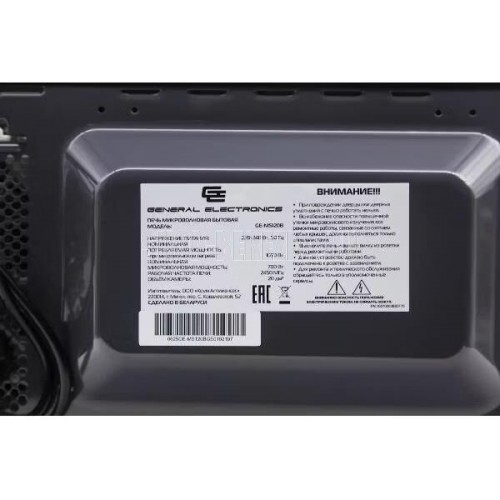 20 Литров, цвет - черный, мощность 700W, 5 режимов мощности, механическое управление. Потребляемая мощность микроволновой печи (Вт) - 1050. Частота - 2450 MHz. Внутренний размер (ВхШхГ) (мм) - 306*304*205, размер коробки - 488*380*291. Вес (n/g) - 10.2/11.2кг