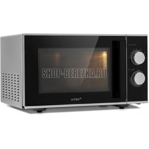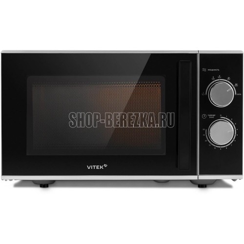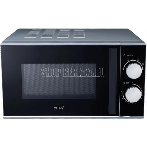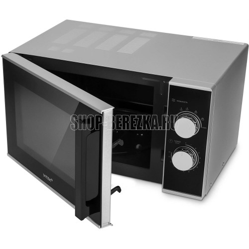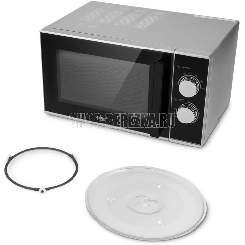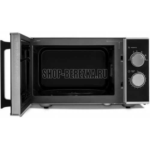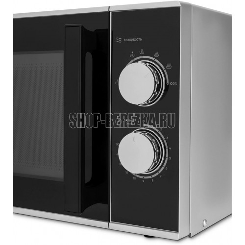 Микроволновая печь механическая. Объем: 23 литра, Мощность: 900 Вт, Диаметр поворотного стола 270 мм, Внутреннее освещение, 6 ступеней регулировки мощности, Таймер на отключение до 30 минут, Полноразмерное стекло дверцы, Цвет: Серебро
