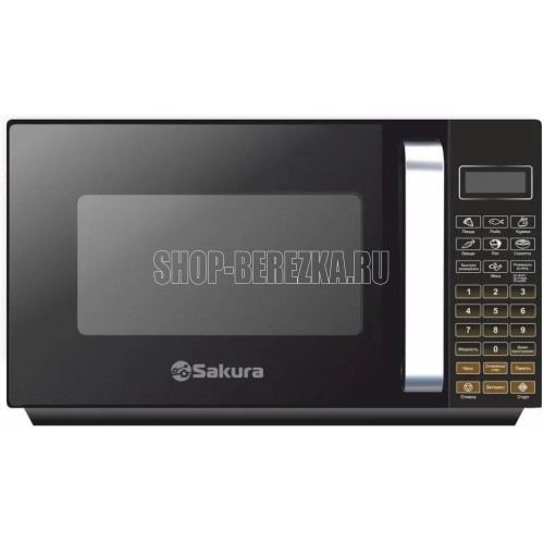 Микроволновая печь; Тип управления: механическое; Внутреннее покрытие: эмаль; Номинальная выходная мощность микроволн: 700Вт; Внутренний объем: 20 л; Диаметр поворотного стола :245 мм; Количество уровней мощности: 6; Параметры сети: 230Вт ~50Гц; Потребляемая мощность: 1200Вт; Режим разморозки по времени и весу; Подогрев; 9 автоматических режимов приготовления; Встроенные часы; Сигнал об окончании готовки; Таймер (99 минут и 99 сек макс.); Управление: электронное; LED-дисплей; Блокировка от детей; Цвет корпуса и передней панели: черный, ручка хром; Особенности: дверца навесная, открывание дверцы-ручка, подсветка.