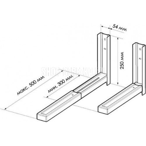 Кронштейн С 2 используется для крепления микроволновой (СВЧ) печи. Нагрузка макс: 40 кг. Цвет: черный. Упаковка: 85*310*360 мм. Масса: 2,57 кг. Позволяет выдвинуть основания от 300 мм до 500 мм.
