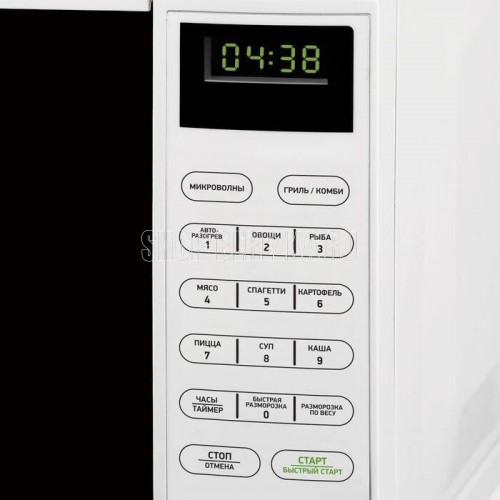 Мощность микроволн 700 Вт Энергопотребление 1050 Вт Внутренний объем 20 л Диаметр поддона 25.5 см Гриль есть Мощность гриля 1000 Вт Конвекция нет Комбинированные режимы микроволны + гриль Внутреннее покрытие камеры эмаль легкой очистки Режимы и функции Автоматические программы приготовления есть Количество программ 9 Инверторное управление мощностью нет Автоматическая разморозка есть Автоматический разогрев есть Отключение звукового сигнала нет Отсрочка старта нет Панель управления Вид управления сенсор Блокировка от детей есть Дисплей есть Таймер 99 мин Часы есть Дополнительная информация Дверца навесная Открывание дверцы кнопка Комплектация решетка, документация, стеклянный поддон Дополнительно 10 уровней мощности, размораживание по весу Габариты и вес