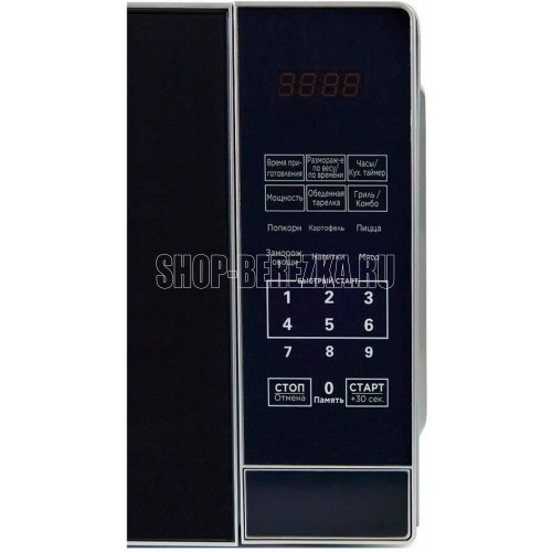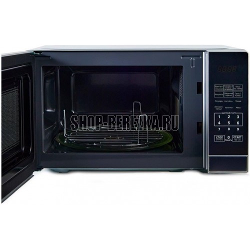 Тип: с грилем. Внутреннее покрытие камеры: эмаль. Инверторное управление мощностью: нет. Мощность микроволн: 700 Вт. Объем: 20 л. Диаметр поворотного стола: 25.5 см. Количество автоматических программ: 7 шт. Автоматическая разморозка: есть. Мощность гриля: 1100 Вт. Тип гриля: кварцевый. Защита от детей: да. Открывание дверцы: кнопка. Дверца: боковая. Поворотный стол: есть. Дисплей: есть. Тип управления: электронное. Таймер: да.