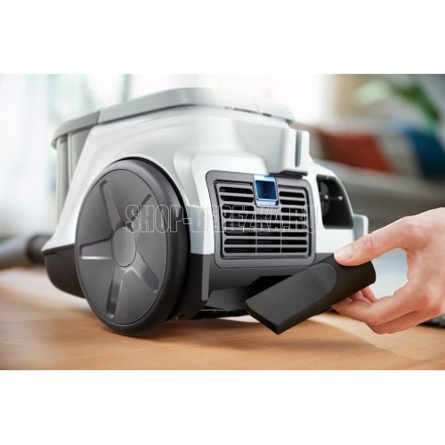 Мощность: 1800 Вт. Входная мощность (IEC): 1600 Вт. Уровень шума (Lc IEC): 82 дБ. Мощность всасывания: 360 Вт. Электропитание: 220-240 В, 50/60 Гц. Вместительность пылесборника: 1.3 л. Воздушный фильтр: Микрофильтр. Выходной фильтр: Super Clean Air. Тип пылесоса: Без мешка. Тип уборки: Сухая. Радиус действия: 8.8 м. Ручка для переноски: Передняя. Длина шнура: 6 м. Тип трубки: Металлическая телескопическая трубка из двух частей. Тип колес: Пластиковые. Особенности: Для ковров, Для паркета, Компактный размер.