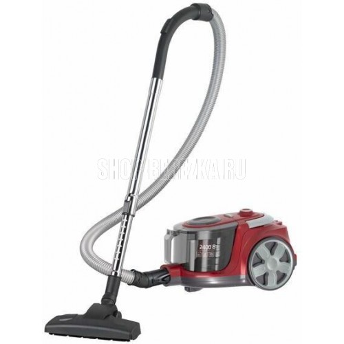 Мощность максимальная: 2400Вт, циклонная система очистки, макс.мощность всасывания: 450 Вт, уровень шума ≤79 дБ, контейнер д/сбора пыли 3,0л, удлинительная металлическая телескопическая труба, длина шнура: 5м (до желтой метки 4м). Входной HEPA-фильтр + поролоновый фильтр, выходной HEPA-фильтр. Комплектация: щетка напольная двухпозиционная, насадка щелевая 2в1. Цвет: красно-серый.