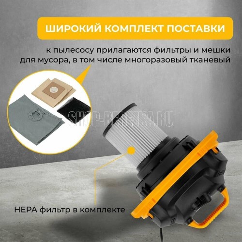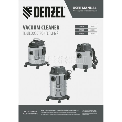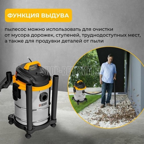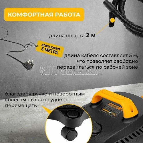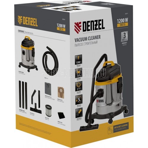 DENZEL SVC15, 1200 Вт, бак 15 л, шланг 2 м 28201