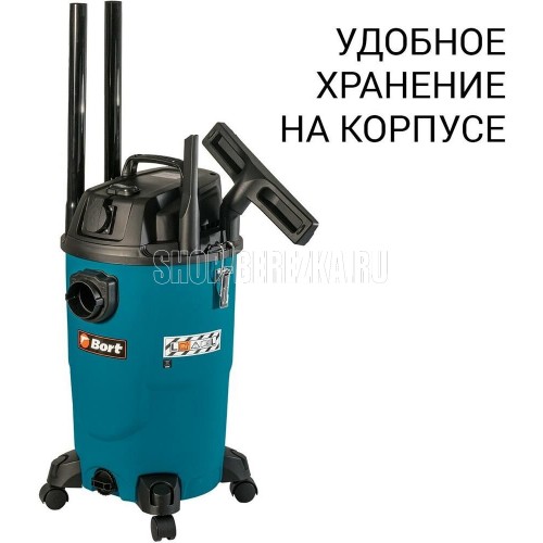 Расход воздуха 42 л/сек; 80 л/сек; Вместимость бака 30 л; Потребляемая мощность 1400 Вт; Разрежение 22 кПа; Тип пылесоса Мультифункциональный пылесос; Байпасный; Тип уборки Сухая и влажная уборка; Длина шланга 3 м; Диаметр шланга 32 мм; Мощность всасывания 280 Вт; ...2000 Вт; Тип пылесборника Патронный HEPA фильтр; Класс пыли "L"; Пластик; Система очистки фильтра Нет; Подключение электроинструмента; Функция автоотключения; функция сбора жидкости; функция выдува; Длина кабеля 6 м; Уровень шума 78 дБ; Вес изделия 7,6 кг; Напряжение 220 В; Частота тока 50 Гц; Вес брутто=8,9 (Вес нетто=7,6) кг; 36 x 36 x 63; набор аксессуаров 8 шт; Байпасный мотор, Розетка для подключение электроинструмента к пылесосу, HEPA фильтр позволит чередовать сухую и влажную уборку без замены фильтра, Функция выдува будет полезна как в мастерской так и на садовом участке, Функция сбора жидкости, Сливное отверстие для слива жидкостей из бака; гарантия 2 г