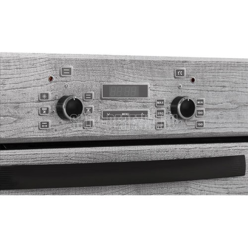 Духовой шкаф. Цвет: серый с рисунком "дерево". Габаритные размеры ШхГхВ: 59.8х56.5х59.5 см. Объём духовки: 55 л. Гриль электрический. Таймер сенсорный. Подсветка духовки двойная. Телескопические направляющие. Съемные проволочные направляющие духовки. Усиленный гриль с конвекцией. Класс электробезопасности: I.